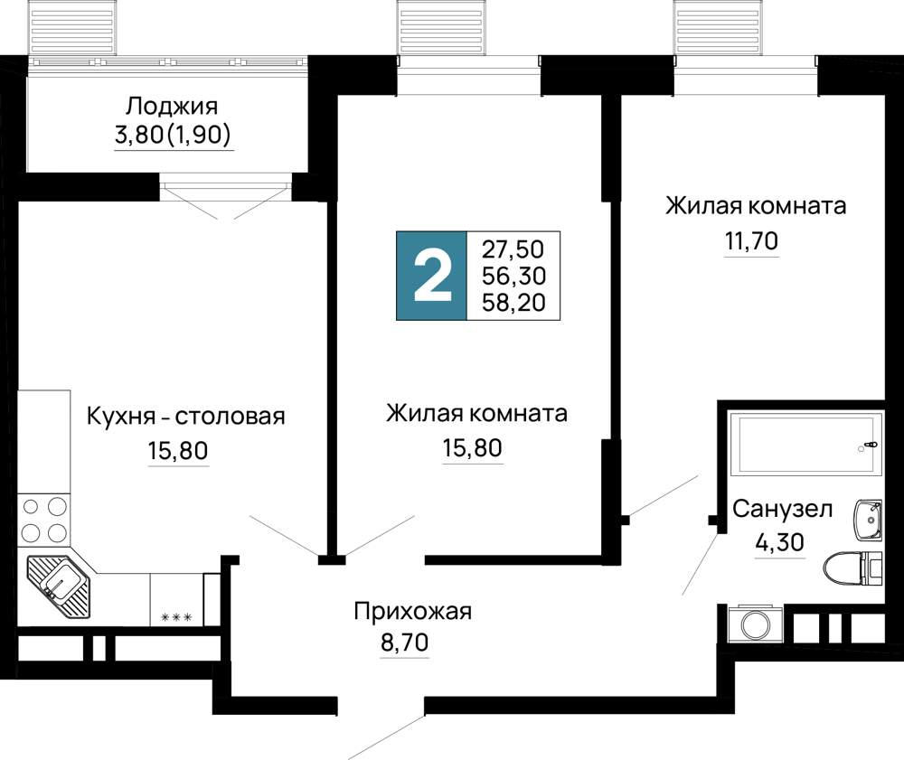 Продажа двухкомнатной квартиры в новостройке в Майкопе 51-100 кв.м.