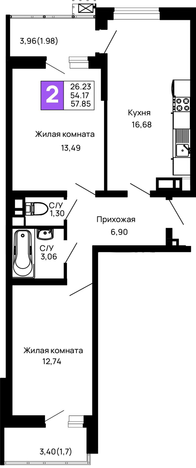 57.9 м2